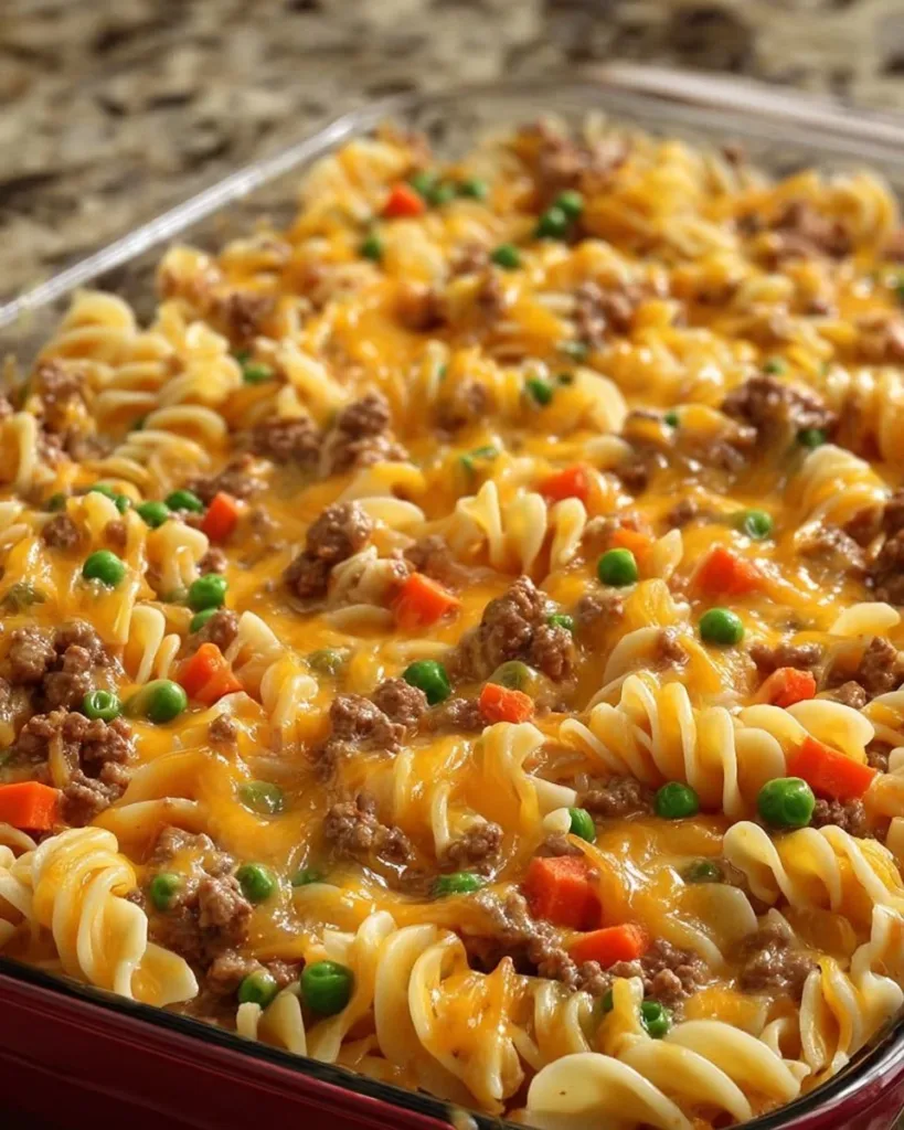 This Amish Sunday Savior Casserole is a comforting, no-fuss family meal that feels like a warm hug from the oven. Ground beef melds with tender sautéed onion, carrots, and celery to create a savory base that carries the sweet pop of frozen peas and the soft, chewy comfort of cooked egg noodles. The aroma is rich and homey, with caramelized onion notes and roasted beef filling the kitchen as it bakes to a light golden top. Texture is pleasingly varied: a meaty, slightly crisp top and a tender, saucy interior where vegetables and noodles hold together without becoming mushy. It is ideal for busy weeknights, relaxed Sunday dinners, or any time you need a simple casserole that serves a crowd and reheats beautifully. This dish is comforting, straightforward, and reliably kid-friendly, making it one of those reliable recipes you will return to again and again.